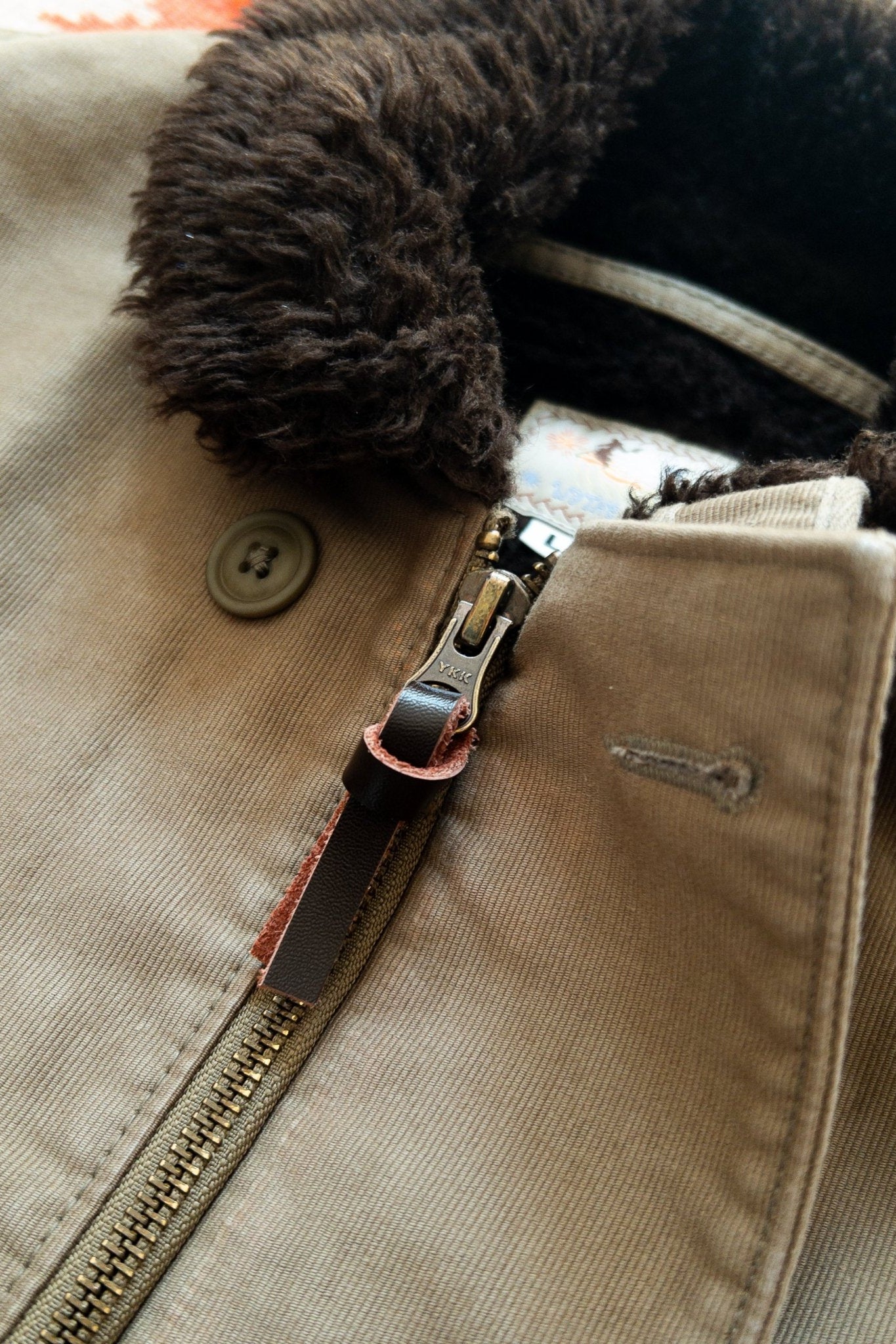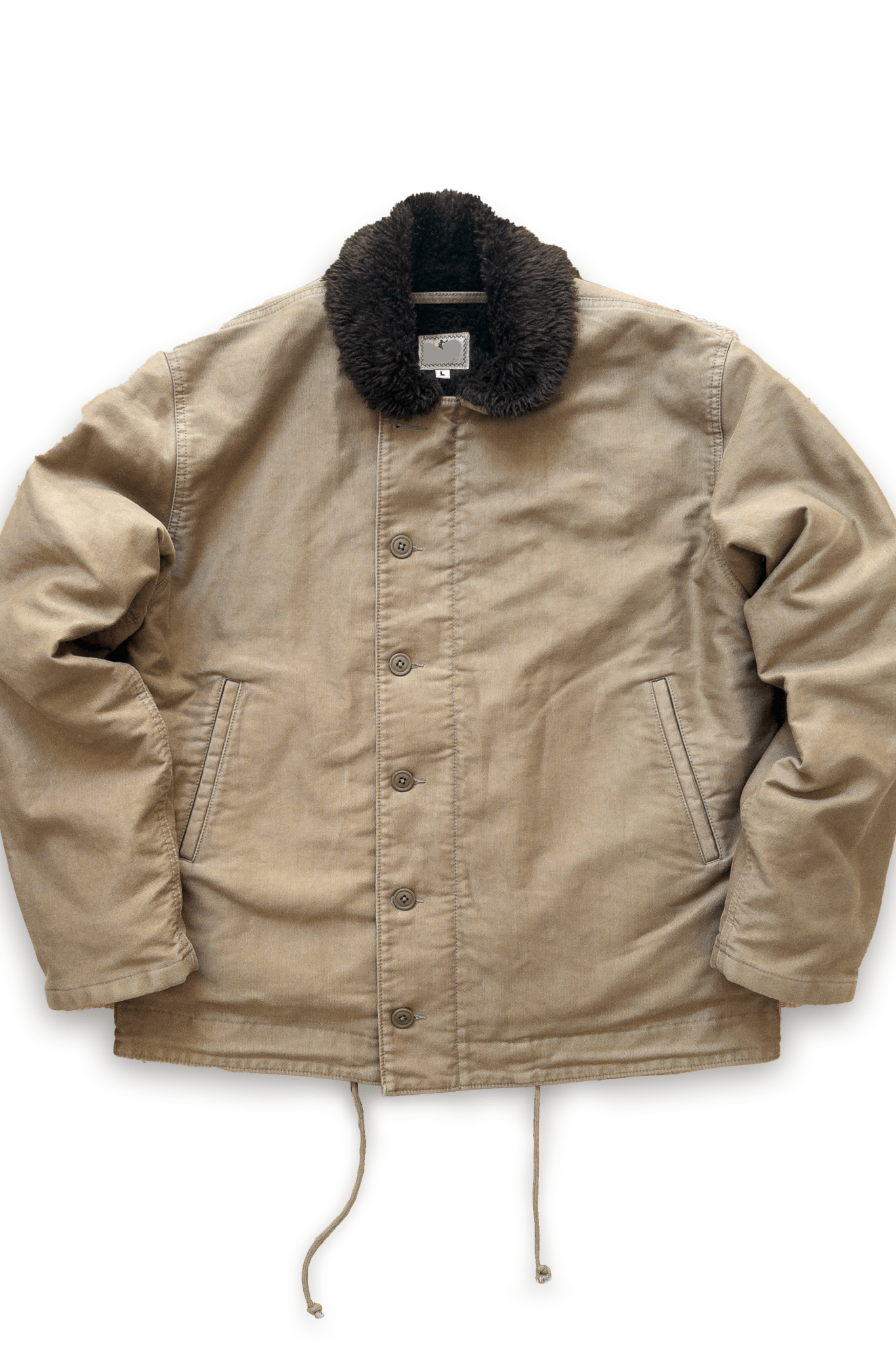 Wythe's spin on the classic WWII US Navy N-1 deck jacket. Jungle cloth outer material is true to the original, with a cotton/poly blend faux-alpaca liner offering significantly better breathability and comfort than the original wool lining. Updated, slightly more generous fit - fits true to modern sizing with a little room underneath to layer on the coldest days.