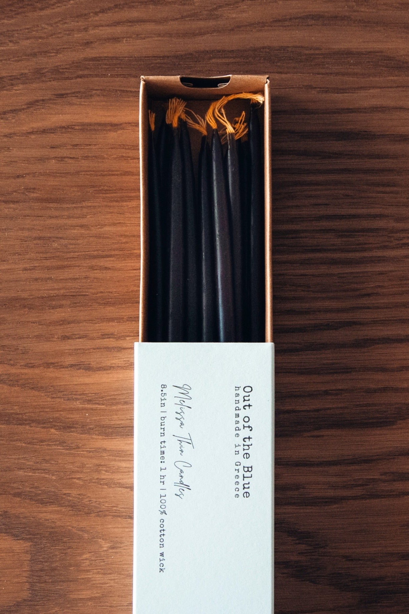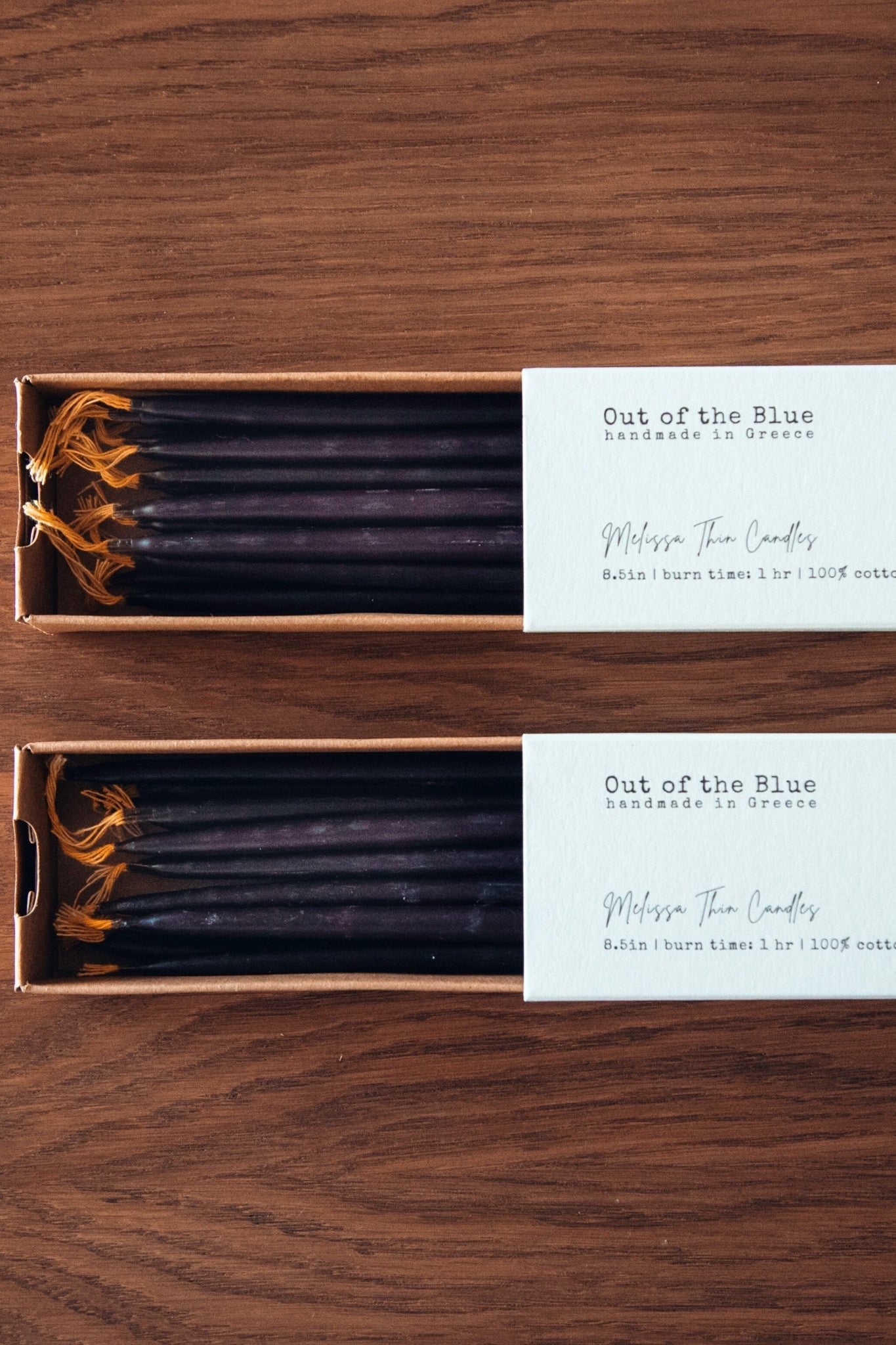 *Our Natural and Ivory Melissa Thin Beeswax Tapers are made from 100% pure beeswax. Our Black & Burgundy Melissa Thin Beeswax Tapers are made from a blend of pure beeswax as well as the highest quality paraffin wax, with an added fragrance of myrrh (black tapers) and sandalwood (burgundy tapers).